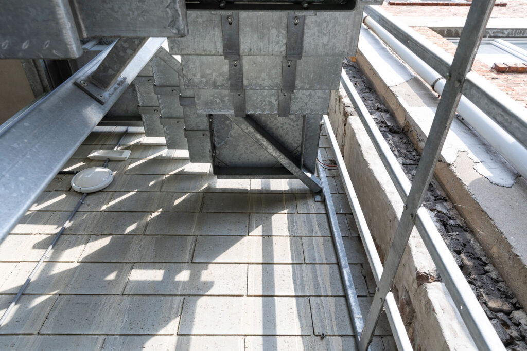 La difficulté pour ce chantier a été de relever les mesures du bâtiment, afin de pouvoir ajuster la maille du Métal Deployer, au millimètre de manière à ce qu’elle soit parfaitement alliée sur la verticalité et l’horizontalité.