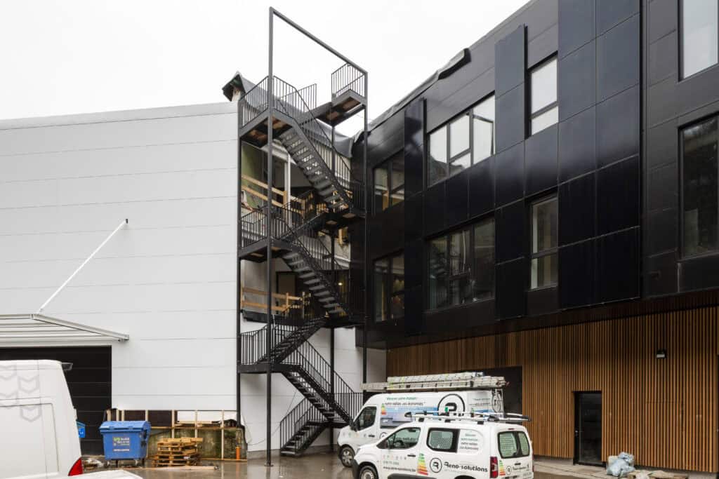 La difficulté pour cette Escalier n’est ni la conception ni la finition, basée sur un escalier type industrielle, la difficulté a été de l’installer sur quatre étages.