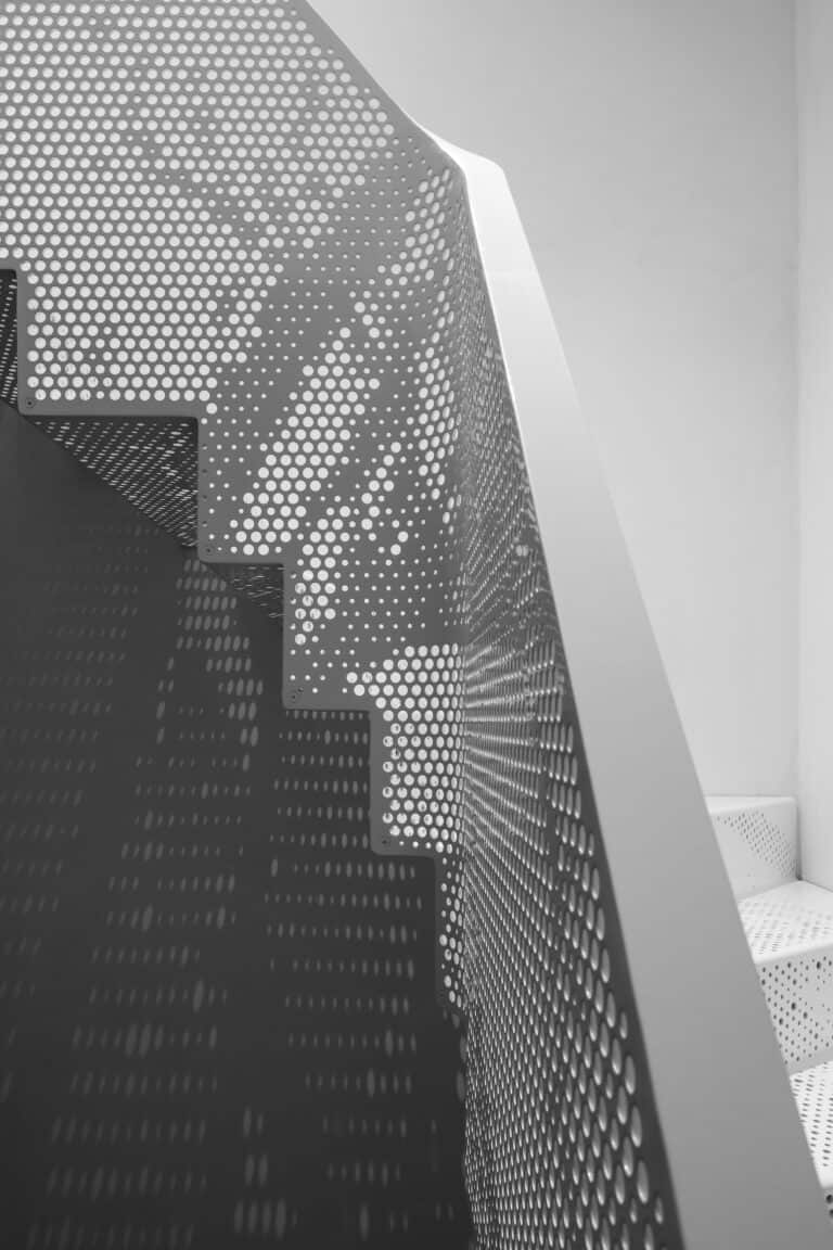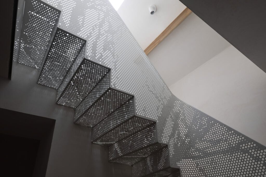 Pour cette escalier, il y a eu pas mal de défis à relever , le premier , le plus difficile était l’inspiration , la maison étant une vieille ferme en pleine campagne je me suis inspiré d’un arbre, en faisant une photo et en reproduisant, le motif par perforation sur les tôles qui constitue l’escalier, la deuxième difficulté était de la dimensionner de manière élégant dans un environnement très petit , la troisième difficultés était de lui donner de l’élégance en ajoutant des courbes sur toutes les jonctions d’angles.